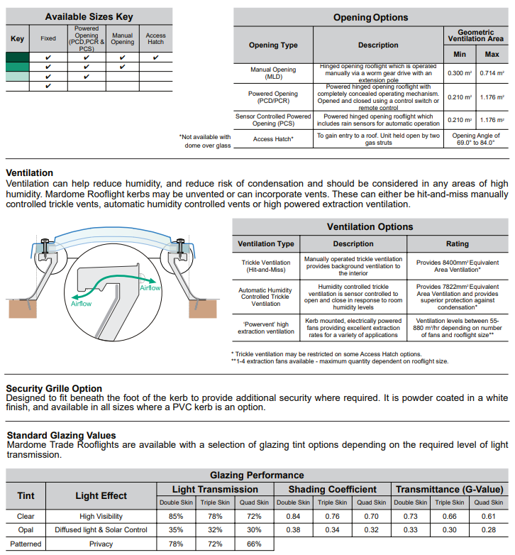 Enhance your space with the Mardome Trade Rooflight, a versatile and efficient solution for bringing natural light into your environment. With its durability, easy installation, and quick delivery options, this rooflight is the ideal choice for those looking to brighten up their flat roof project with style, safety and functionality. Polycarbonate skylights are 250 times stronger than glass offering peace of mind when offering natural light from above.