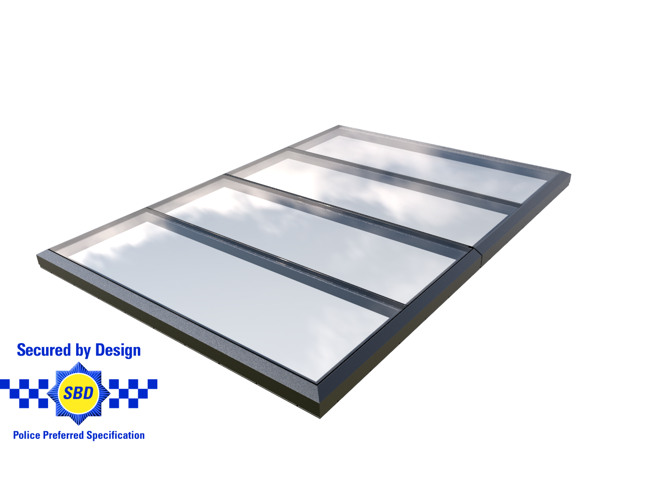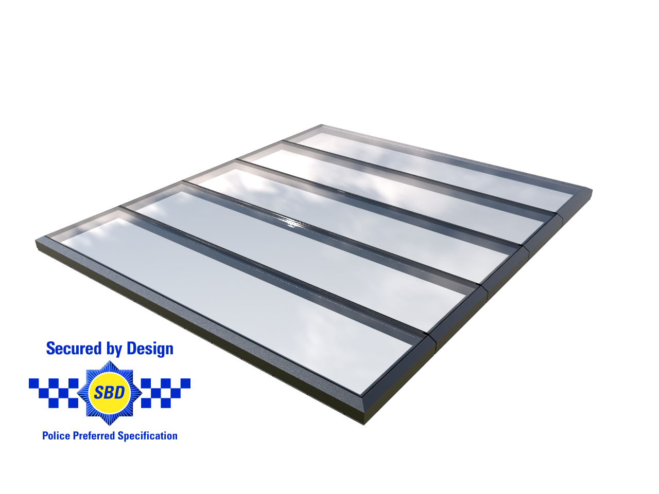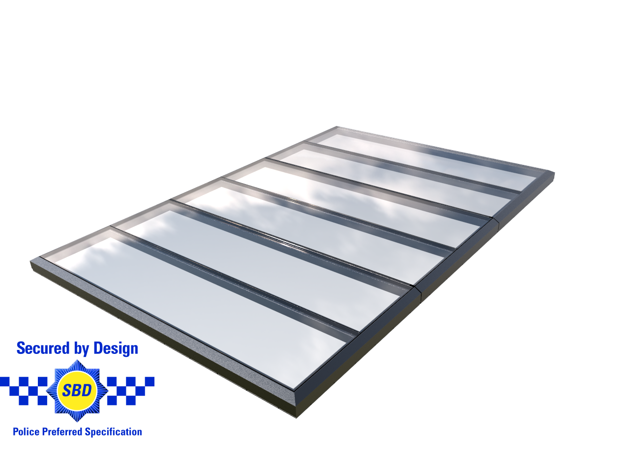 Rooflights with all fixed modules are secured by design as standard