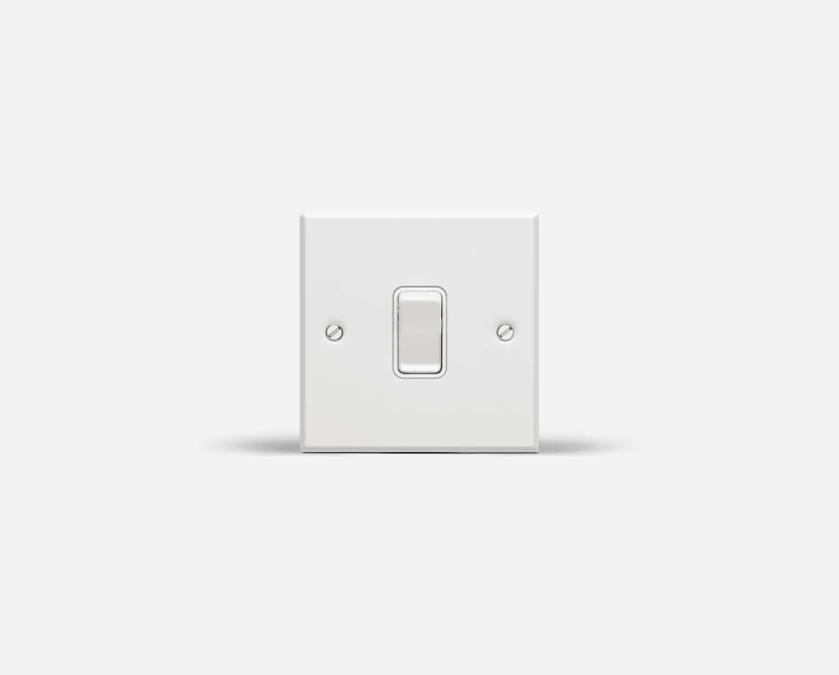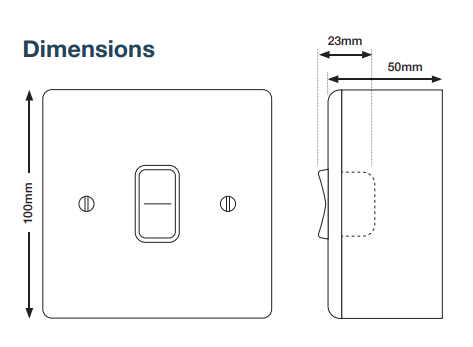 Single pole and double throw with sensor off function. Available in a range of  finishes, which include standard white, chrome, brushed silver or brass effect.