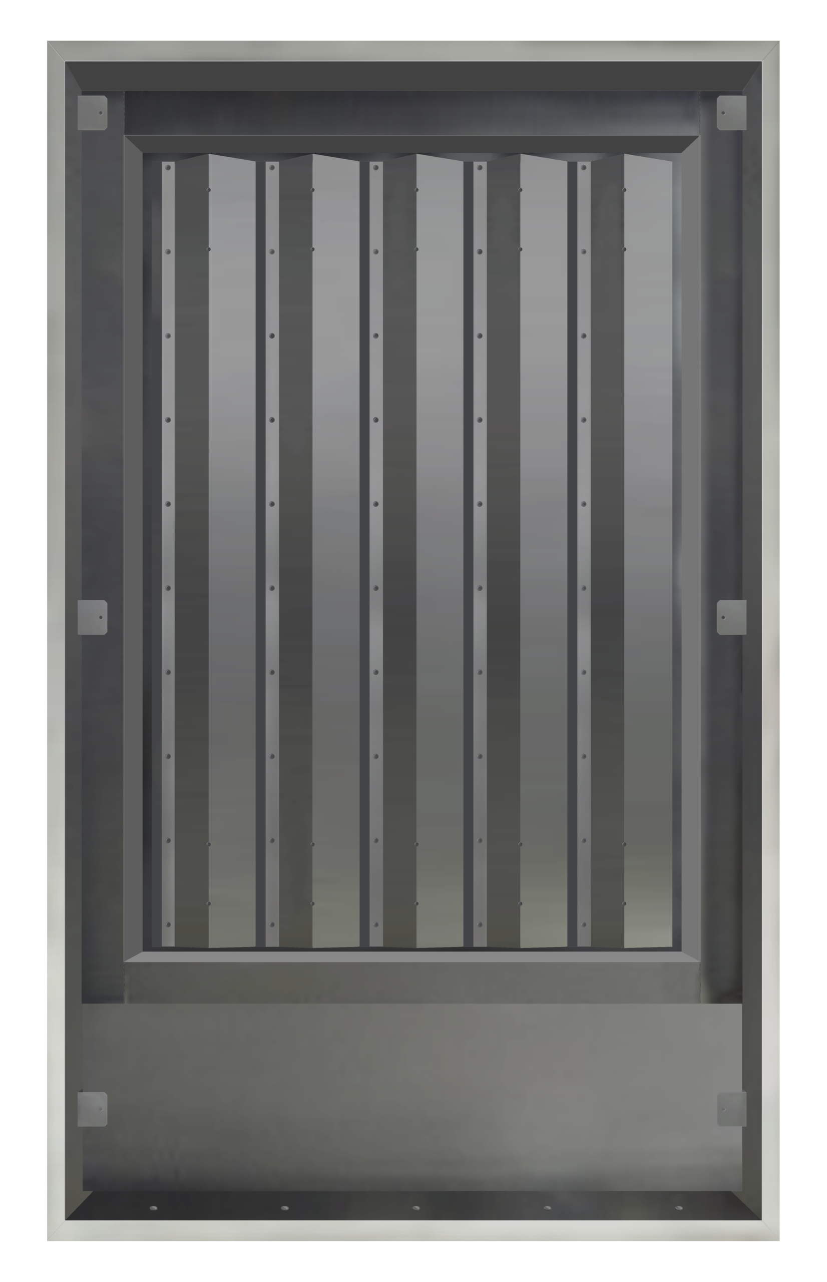 The lobby damper assembly consists of two parts; damper and grille. The main sleeved damper with peripheral flange allows it to be fitted flush into the builders aperture. A 24V ‘power open/power closed’ actuator is used to drive the damper blades from the normal closed position to the fully open position. All damper internal surfaces are spray painted matt black to allow discreet installation behind the supplied aesthetic grille.