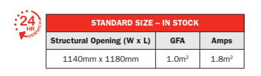 - Structural Opening: 1140mm x 1180mm