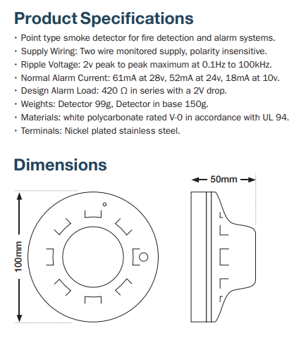Incorporating well-proven sensing technologies the Ventec SD 400 optical smoke detector has a wide operating voltage of 9-33v.